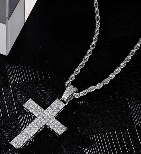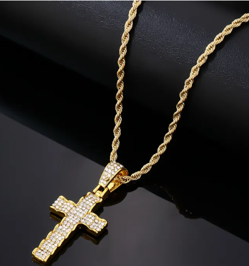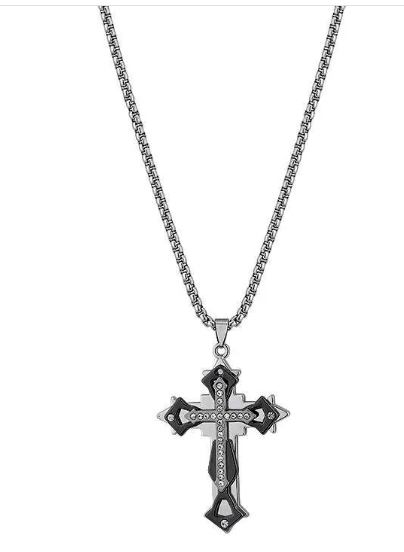 MENS STAINLESS STEEL SILVER AND GOLD CROSS PENDANT NECKLACE