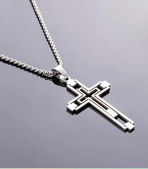 MENS SILVER STAINLESS STEEL HOLLOW OUT PENDANT NECKLACE