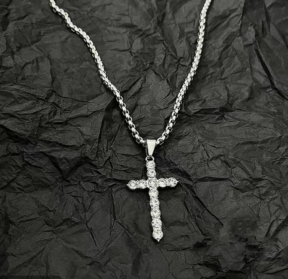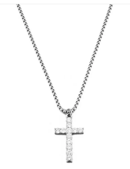 UNISEX SIMPLE CROSS SILVER TITANIUM STEEL PENDANT NECKLACE