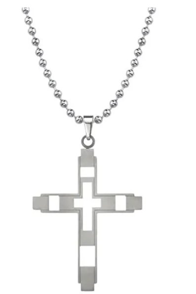 UNISEX TITANIUM STEEL SILVER CROSS PENDANT NECKLACE